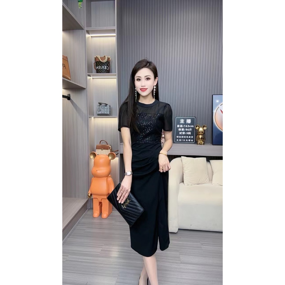 新款网纱高级感短袖气质开叉时尚修身衣服935