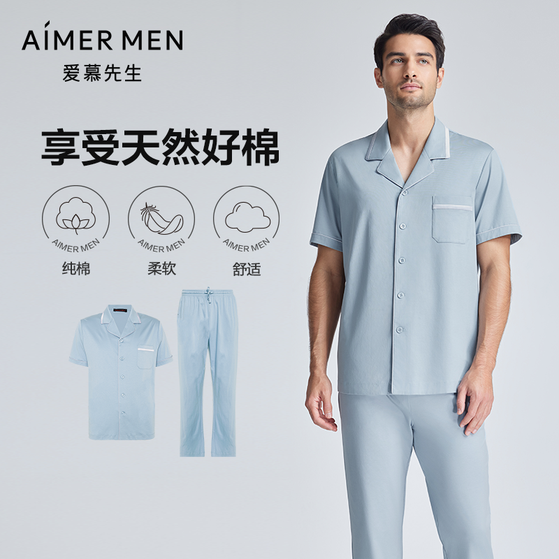 爱慕先生24SS百分百棉家居睡衣套装翻领短袖+长裤NS2024006